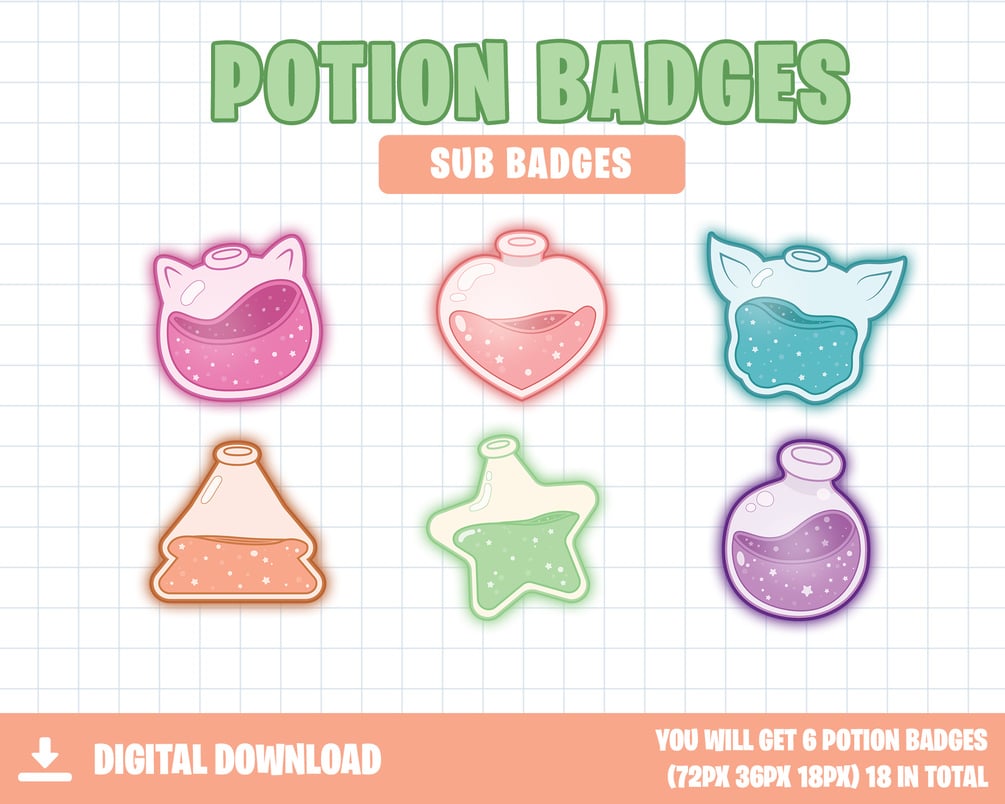 x6 Potion Sub Badges - Sub Badges - Streamer - Emotes - Mixer- Cheer Badge - Subscriber Badge