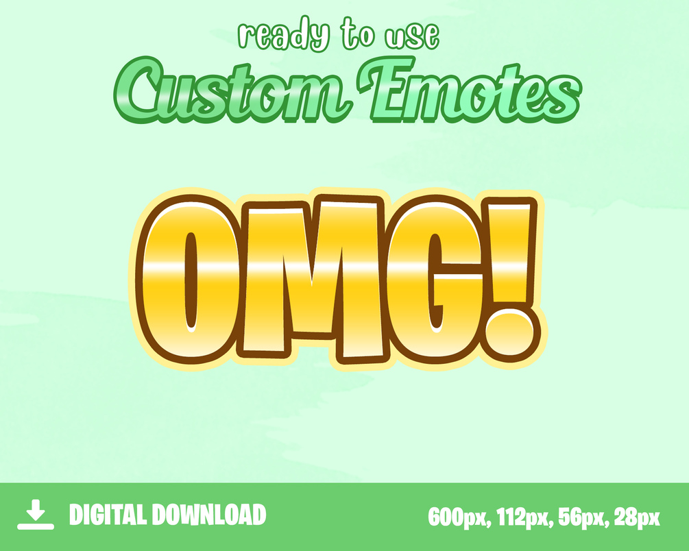 OMG!, This Emote comes in 4 sizes : 600px, 112px, 56px and 28px. so they are optimized and ready to use!